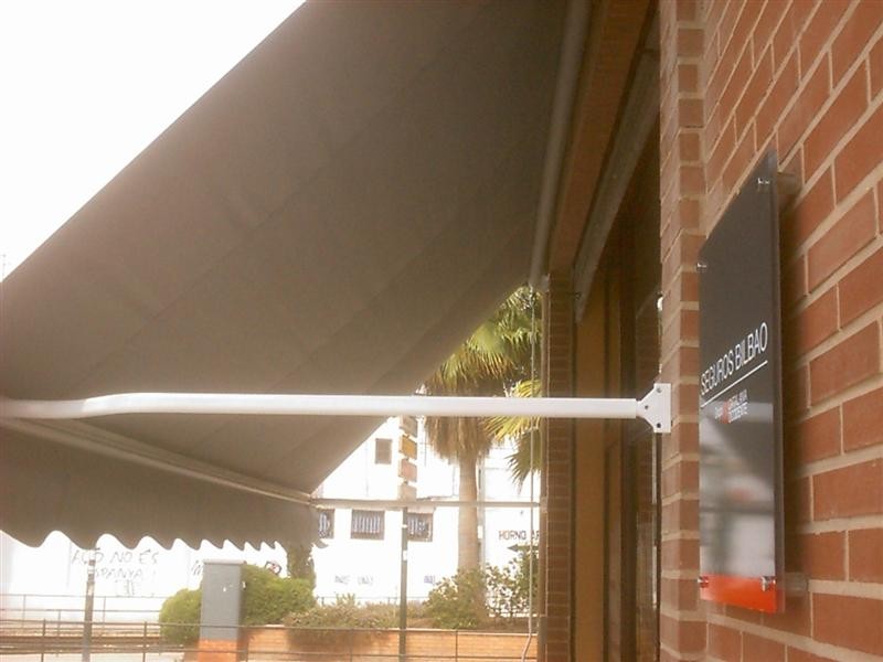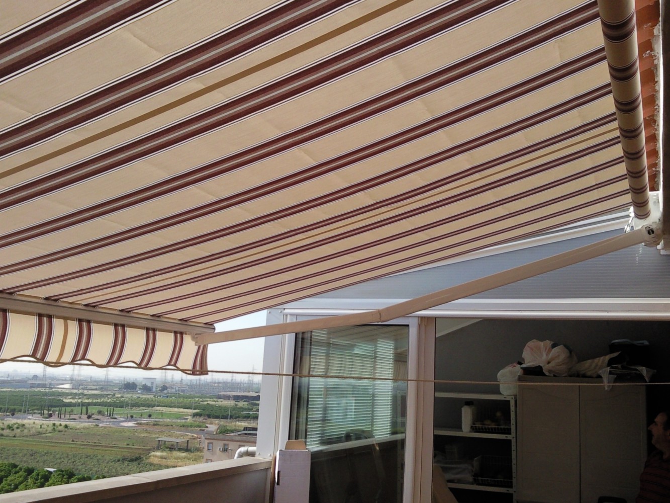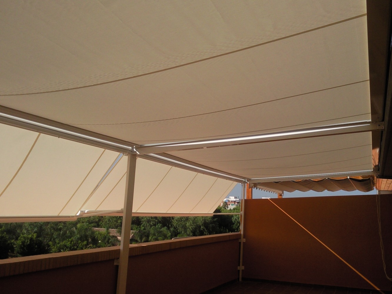 Disponemos de toldos de brazo extensibles que al recoger la lona se guarda dentro de un cajón, sin llegar a ser un cofre totalmente cerrado.