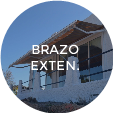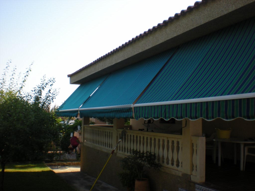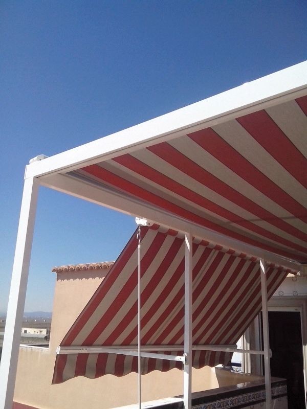 Disponemos de toldos de brazo extensibles que al recoger la lona se guarda dentro de un cajón, sin llegar a ser un cofre totalmente cerrado.
